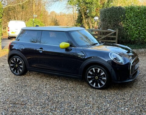 Read our (over 850!) outstanding 5 STAR Autotrader reviews!… MINI Electric Hatch Cooper SE 32.6kWh Level 3 Auto in Enigmatic Black Metallic. Fantastic spec includes Full Black Lounge Leather Upholstery with Heated Front Seats and Black Carpets, Smartphone Integration with Apple Car Play/Android Auto, Nav, Bluetooth, Head Up Display, Panoramic Glass Roof, Reverse Camera with Front and Rear Parking Sensors, Harman Kardon Surround Sound System, Power Folding Door Mirrors, Keyless Entry and Go, Cruise and Climate Control, 2 owners, full Mini service history, MOT until 06/26, 2 x keys, superb throughout…